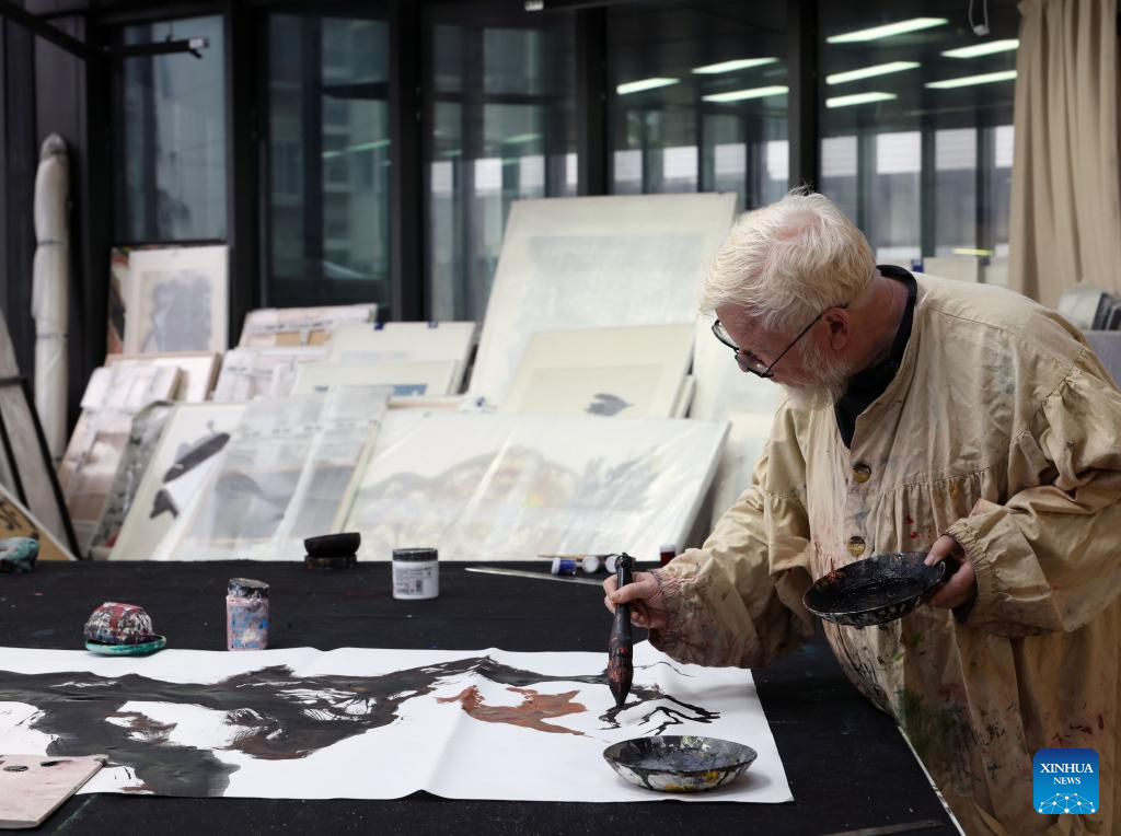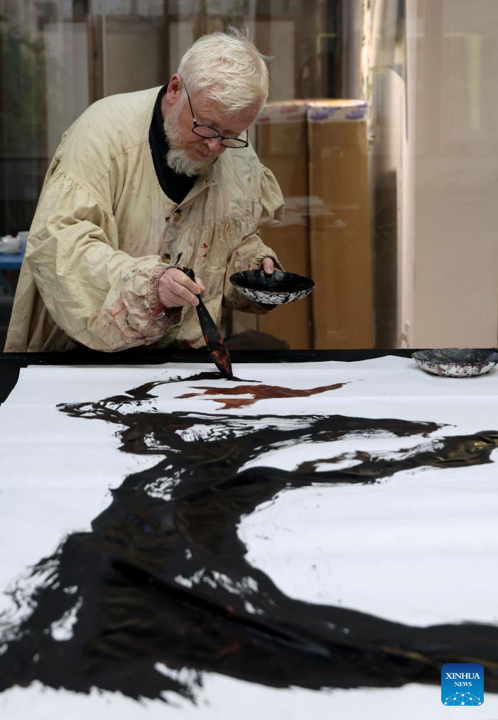 Benoît Vermander paints at a studio in Shanghai, east China, April 22, 2026. Benoît Vermander, a French scholar born in 1960, is not only a professor and doctoral supervisor at the School of Philosophy of Fudan University but also a painter, poet, and cultural ambassador whose life has become a dialogue between East and West.