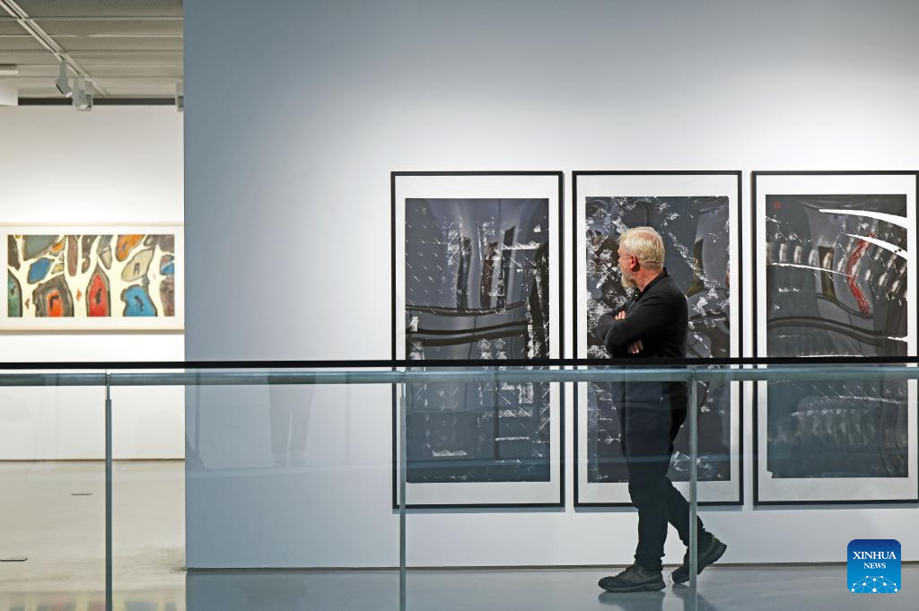 Benoît Vermander is pictured at the site of his own exhibition at a museum in Fudan University, east China's Shanghai, April 22, 2026. (Xinhua/Liu Ying)