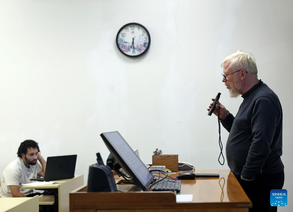 Benoît Vermander delivers a lecture on the Tao Te Ching to his students at Fudan University in Shanghai, east China, April 22, 2026. (Xinhua/Liu Ying)
