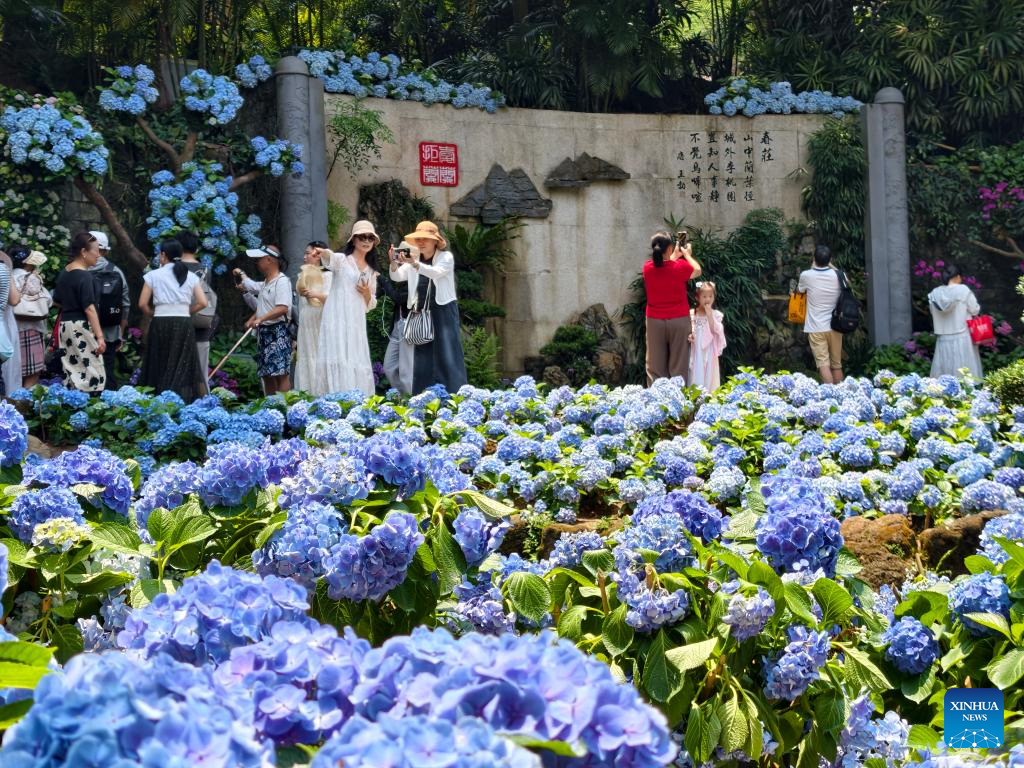 People visit the Macy's Flower Show in New York, the United States, on April 25, 2026. Featuring thousands of flowers and plants with scenic garden installations, the flower show is held here from April 23 to May 10. (Xinhua/Zhang Fengguo)