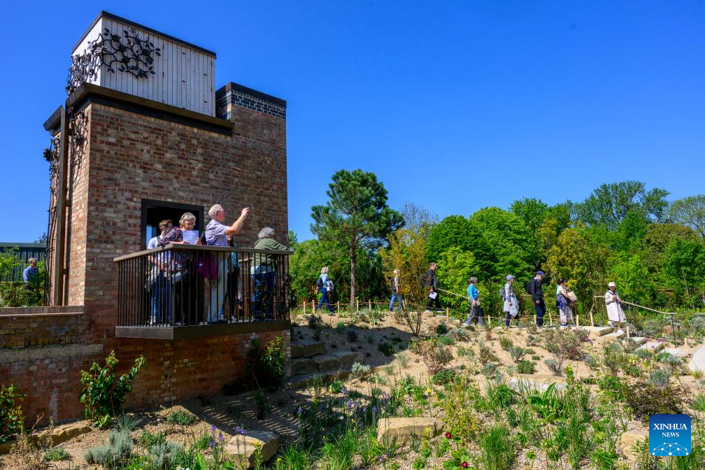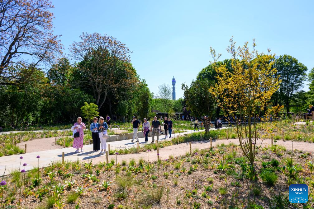 People visit the Queen Elizabeth II Garden in Regent's Park in London, Britain, on April 27, 2026. The two-acre garden opened to the public in central London on Monday in memory of Queen Elizabeth II. (Photo by Ray Tang/Xinhua)