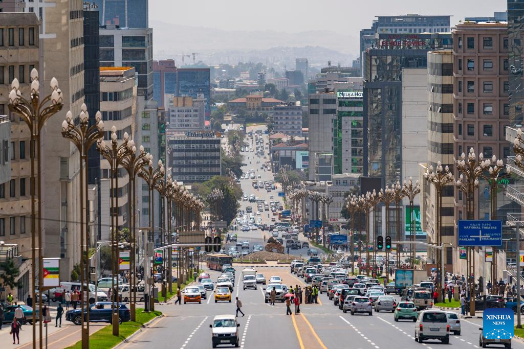 This photo taken on Feb. 12, 2026 shows a city view of Addis Ababa, Ethiopia. Addis Ababa, the capital of Ethiopia, whose name means "new flower" in Amharic, is located in the country's central highlands and enjoys a mild and pleasant climate. Home to rich cultural heritage and historical sites, the city also hosts the headquarters of the African Union, making it an important hub for multilateral diplomacy in Africa. (Xinhua/Xie Jianfei)