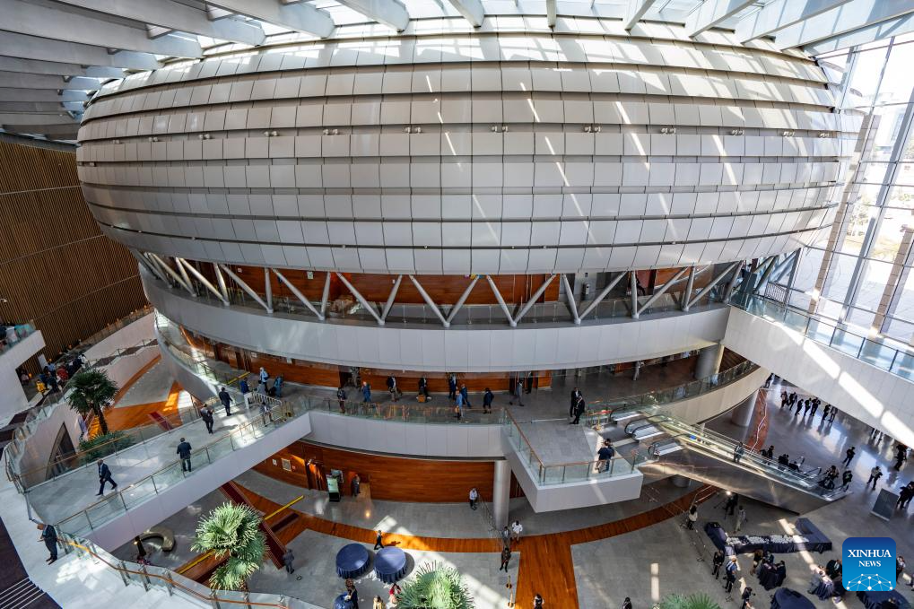 This photo taken on Feb. 14, 2026 shows an interior view of the African Union (AU) headquarters in Addis Ababa, Ethiopia. Addis Ababa, the capital of Ethiopia, whose name means "new flower" in Amharic, is located in the country's central highlands and enjoys a mild and pleasant climate. Home to rich cultural heritage and historical sites, the city also hosts the headquarters of the African Union, making it an important hub for multilateral diplomacy in Africa. (Xinhua/Xie Jianfei)