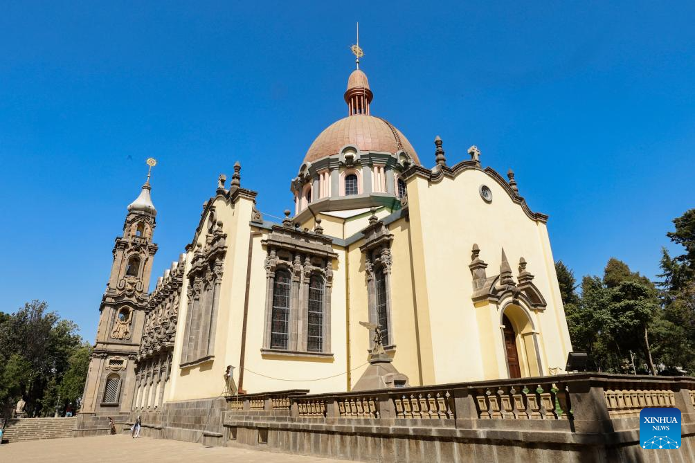 This photo taken on Feb. 15, 2026 shows the Holy Trinity Cathedral in Addis Ababa, Ethiopia. Addis Ababa, the capital of Ethiopia, whose name means "new flower" in Amharic, is located in the country's central highlands and enjoys a mild and pleasant climate. Home to rich cultural heritage and historical sites, the city also hosts the headquarters of the African Union, making it an important hub for multilateral diplomacy in Africa. (Xinhua/Geng Xinning)