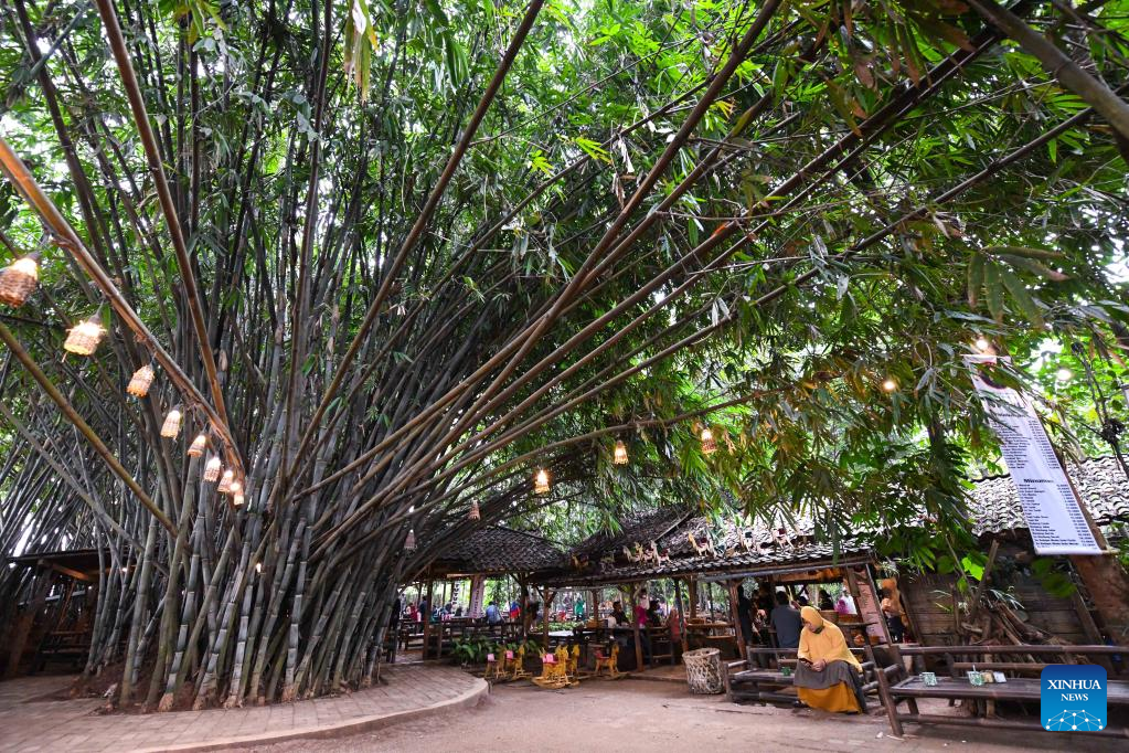 Photo taken on April 1, 2022 shows a view of a restaurant named Warung Tuman in South Tangerang, Indonesia. Located in the woods, this restaurant is locally famous for its Javanese and West Sumatra cuisines. Local people and people from nearby cities such as Jakarta come here to enjoy food in the embrace of nature. (Xinhua/Xu Qin)