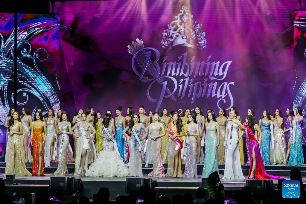 Contestants for the Binibining Pilipinas (Miss Philippines) 2022 perform on stage during the grand coronation night in Quezon City, the Philippines, July 31, 2022. A total of 40 contestants vied for the Binibining Pilipinas 2022 beauty pageant this year. (Xinhua/Rouelle Umali)