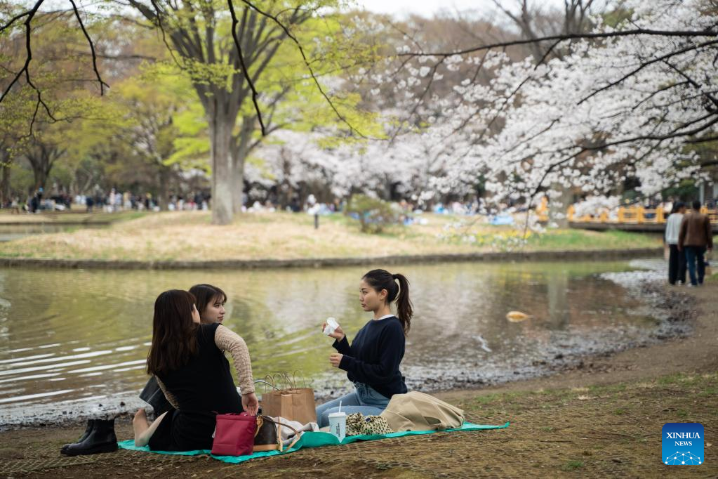 Visitors have picnics on the day of the spring equinox at Yoyogi Park in Tokyo, Japan, March 21, 2023. (Xinhua/Zhang Xiaoyu)