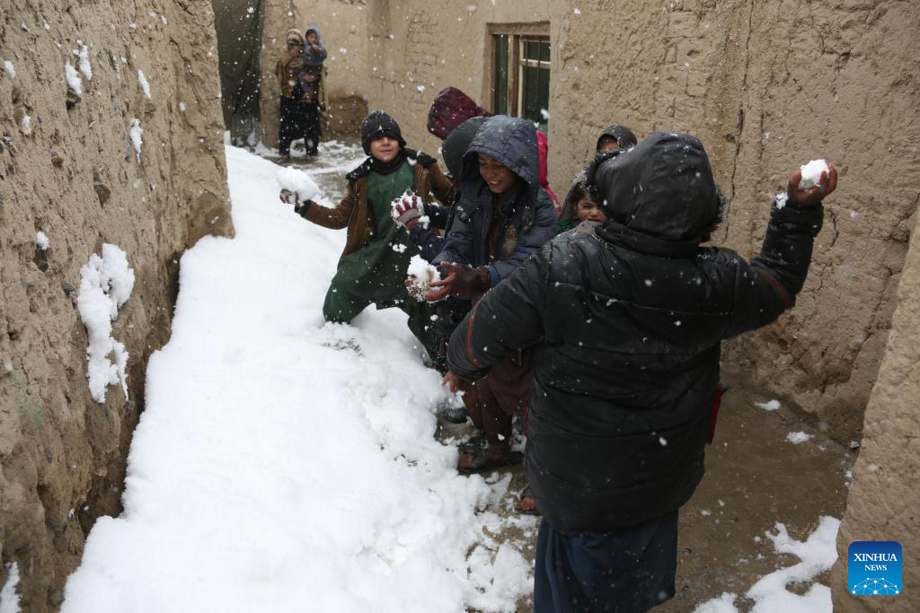 Children play in snow in Kabul, capital of Afghanistan, on Feb. 3, 2024. (Photo by Saifurahman Safi/Xinhua)