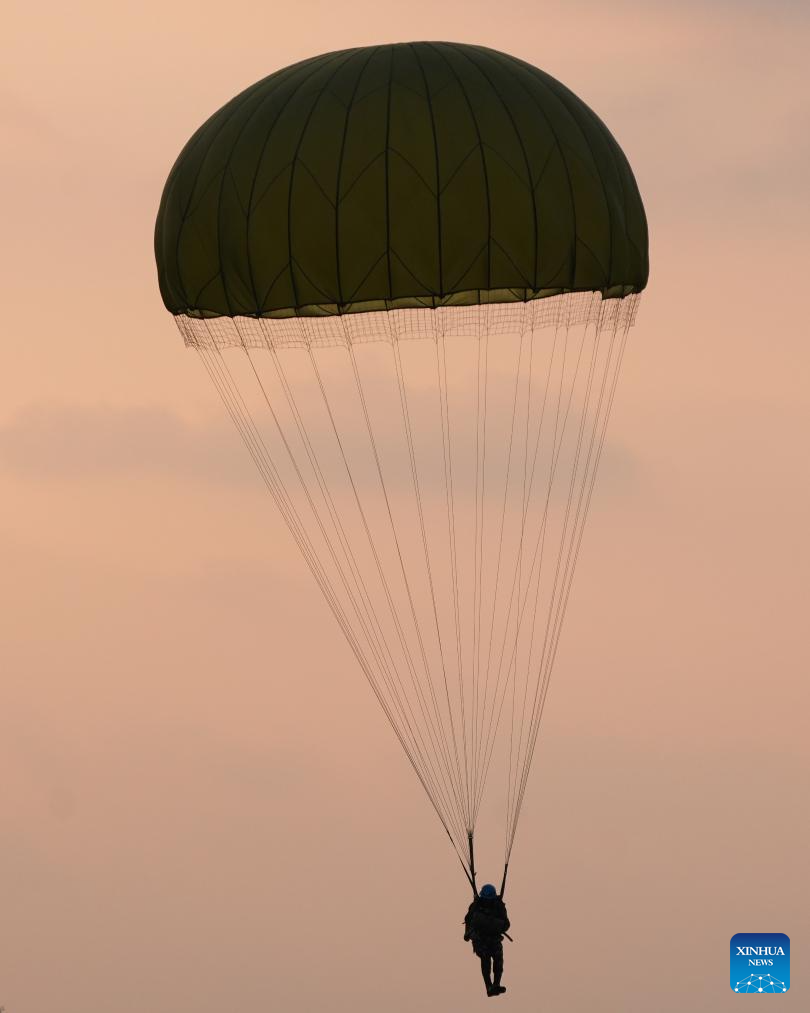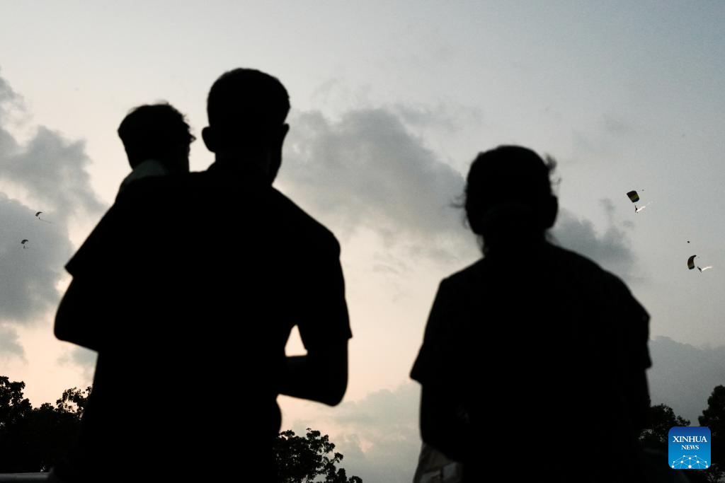 A paratrooper performs during the exhibition and air show to mark the 75th anniversary of the Sri Lanka Air Force in Colombo, Sri Lanka, on March 6, 2026. (Photo by Thilina Kaluthotage/Xinhua)