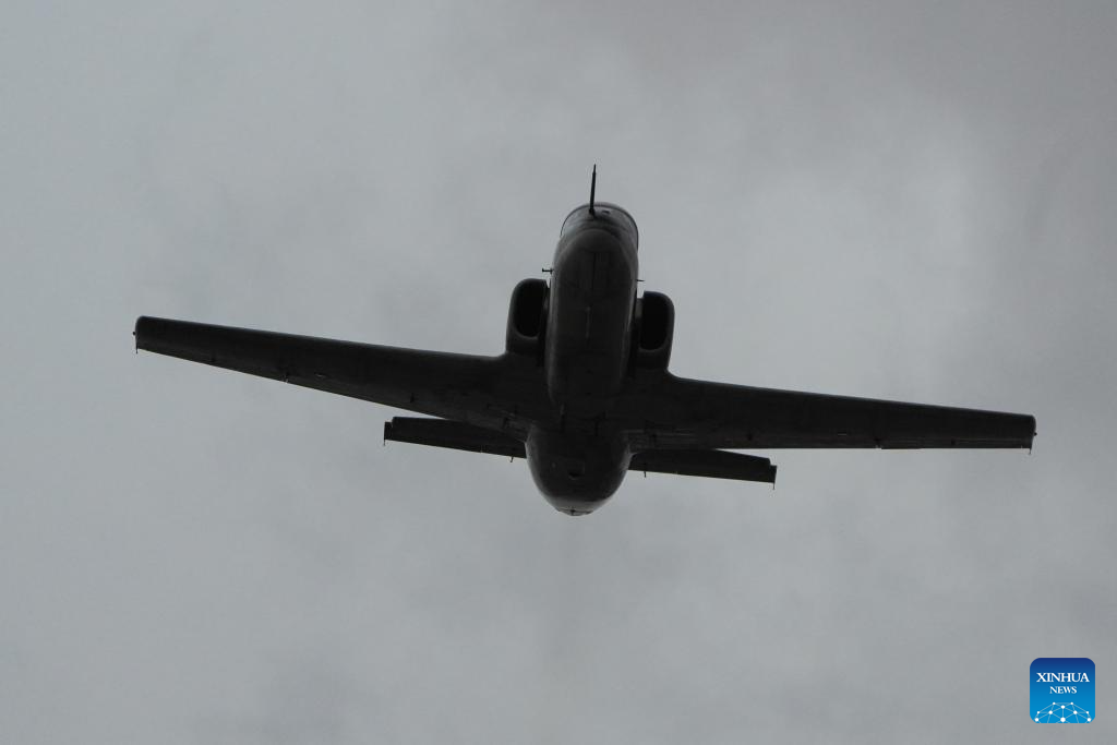 A plane performs during the exhibition and air show to mark the 75th anniversary of the Sri Lanka Air Force in Colombo, Sri Lanka, on March 6, 2026. (Photo by Thilina Kaluthotage/Xinhua)