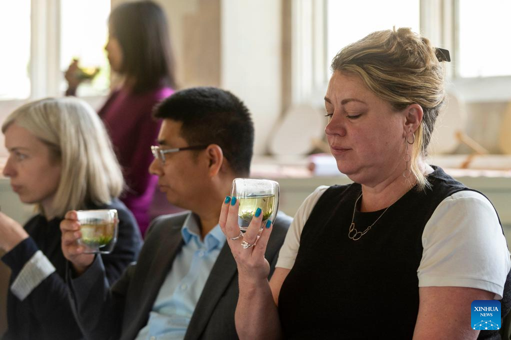 BATH, Britain, May 24 (Xinhua) -- After a tea master elegantly rinsed the teapot and teacups with hot water, brewed the tea and poured it, a dozen of people from across Britain lifted their cups and tasted the tea with great appreciation. And the room was suffused with a refreshing aroma of tea.