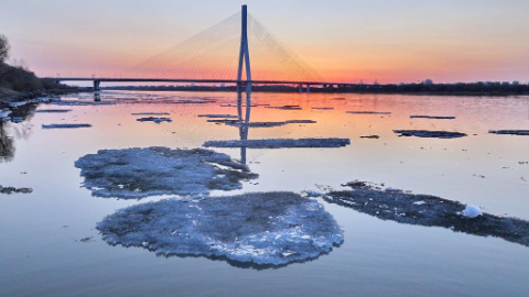 View of drift ice floating on surface of Heilongjiang River, Songhua River