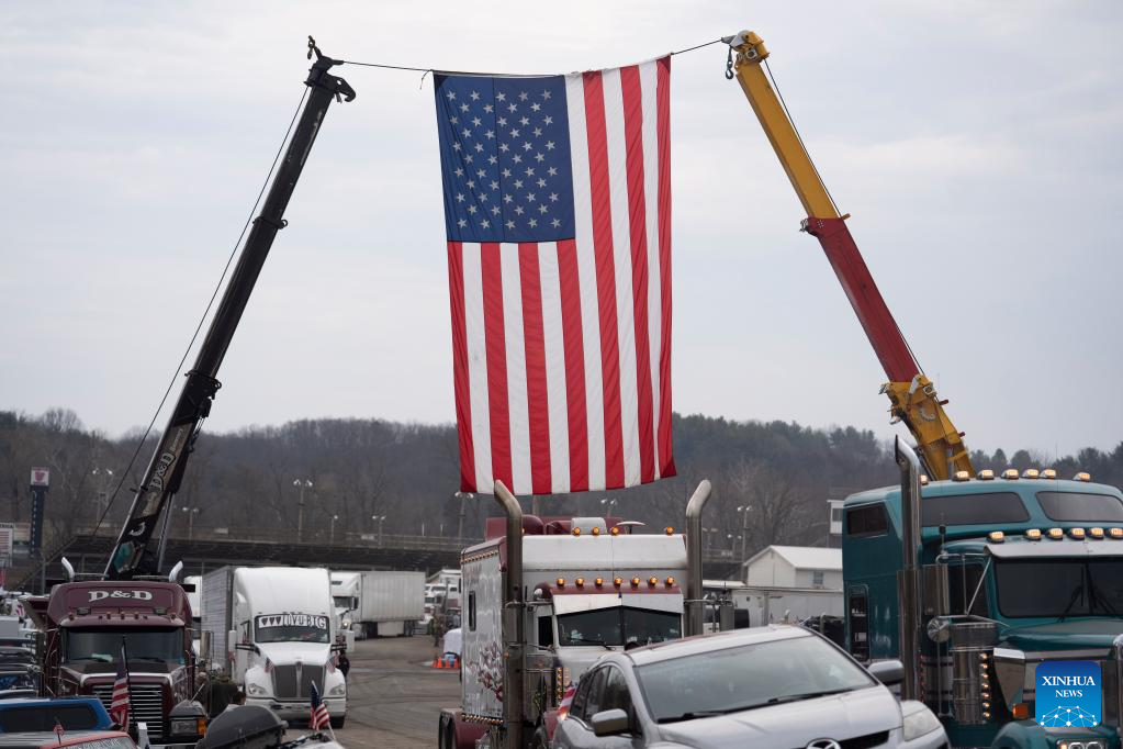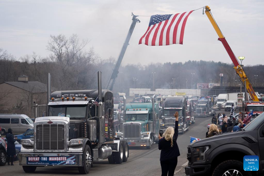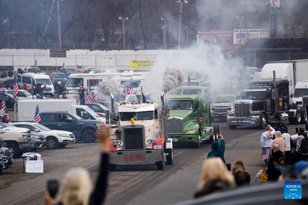 WASHINGTON, March 10 (Xinhua) -- A convoy of truckers and other drivers circled the Capital Beltway that surrounds Washington, D.C., on Thursday, the fourth day since their demonstration against COVID-19 restrictions began here early this week.