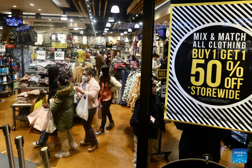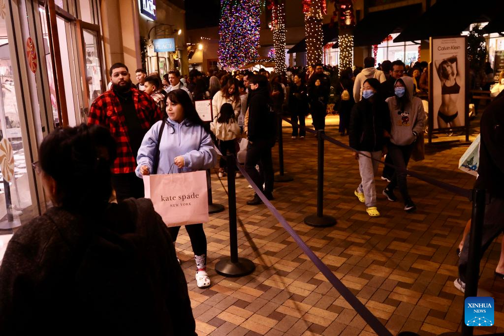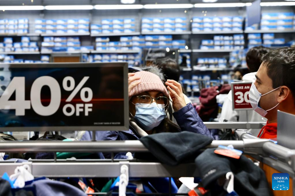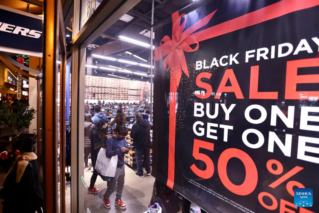 People shop at a store during Black Friday in Los Angeles, California, the United States, on Nov. 25, 2022. On average, American households are spending 433 U.S. dollars more per month to purchase the same items they did at the same time last year, an analysis by Moody's Analytics found. The analysis looked at October inflation data, as the United States sees the worst inflation in 40 years. (Xinhua)