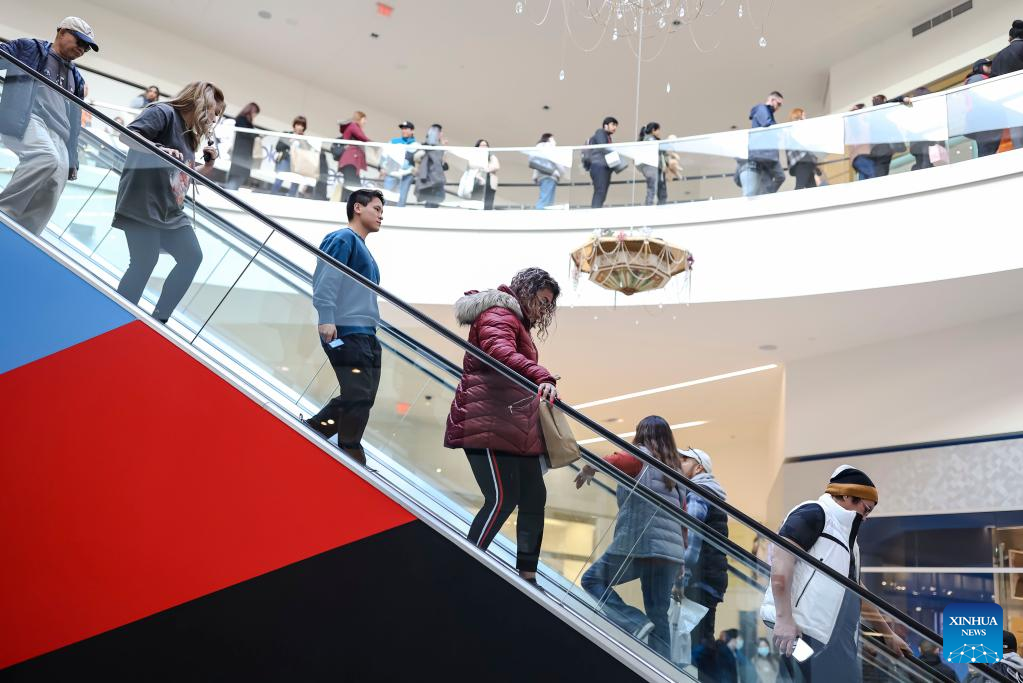 People are seen during Black Friday sales at Chicago Fashion Outlets in Chicago, the United States, on Nov. 25, 2022. On average, American households are spending 433 U.S. dollars more per month to purchase the same items they did at the same time last year, an analysis by Moody's Analytics found. The analysis looked at October inflation data, as the United States sees the worst inflation in 40 years. (Photo by Joel Lerner/Xinhua)