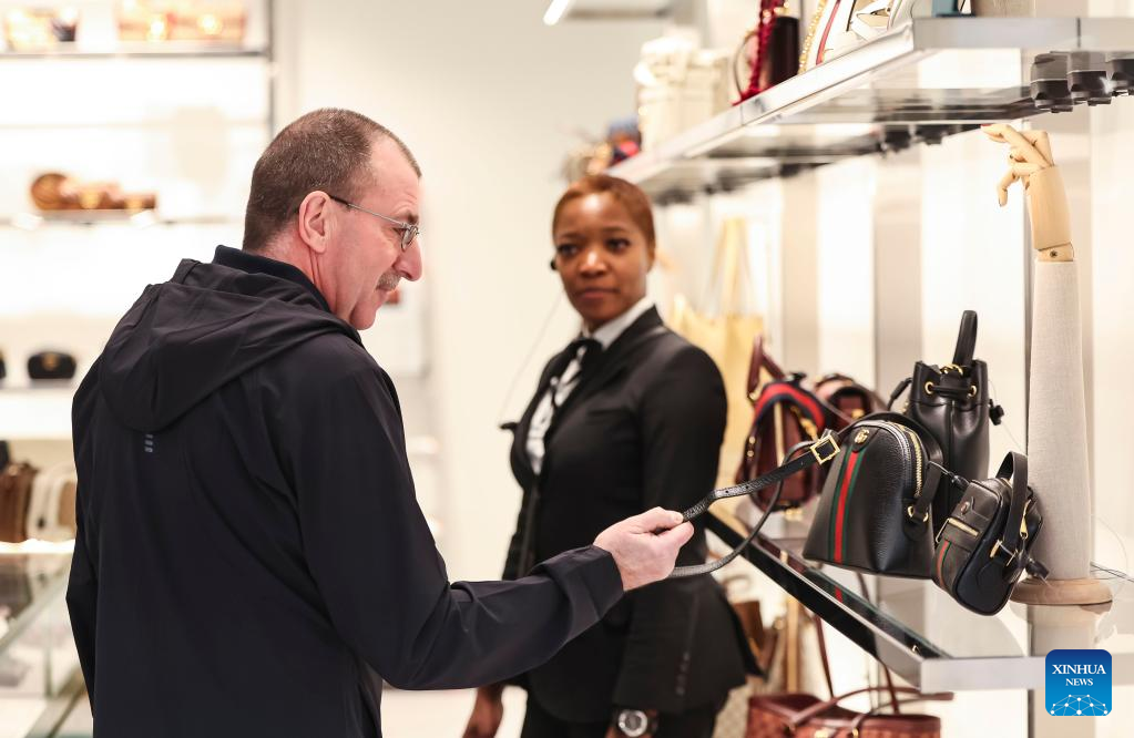 People look at handbags at a store during Black Friday sales at Chicago Fashion Outlets in Chicago, the United States, on Nov. 25, 2022. On average, American households are spending 433 U.S. dollars more per month to purchase the same items they did at the same time last year, an analysis by Moody's Analytics found. The analysis looked at October inflation data, as the United States sees the worst inflation in 40 years. (Photo by Joel Lerner/Xinhua)