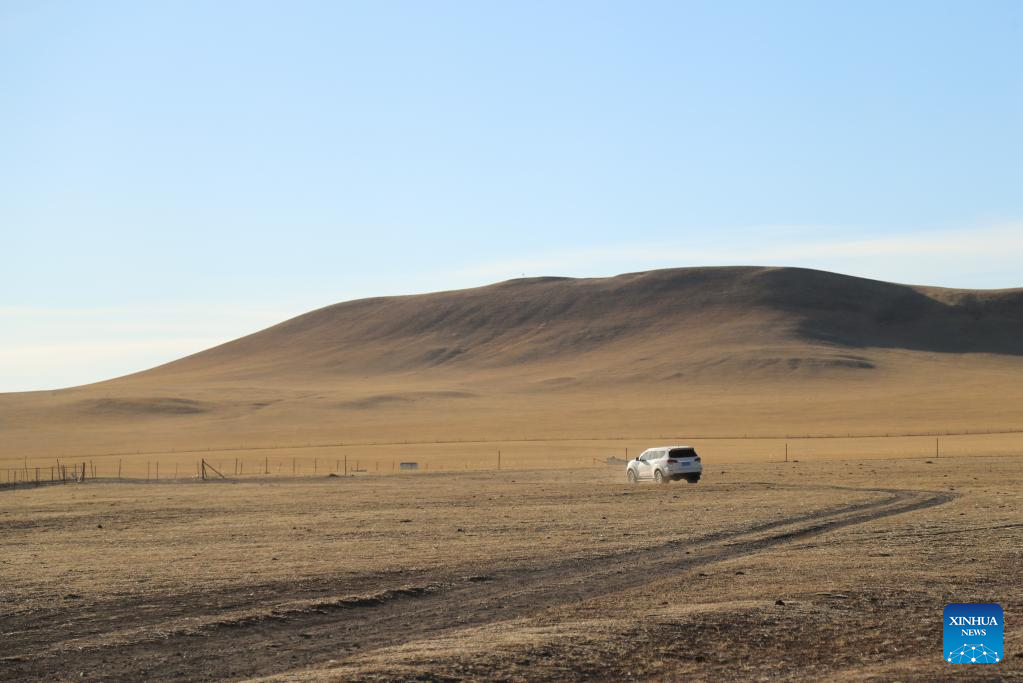 A car sends herdsman Tsogdelger's children to school in West Ujimqin Banner of Xilingol League, north China's Inner Mongolia Autonomous Region, March 29, 2023. In spring, the busiest season of the year, Tsogdelger, a herdsman of the Mongolian ethnic group, and his family need to assist with lambing and feed livestock every day. More than 280 lambs have been born in his farm since March 18. From the beginning of this year until March 30, a total of 581,300 offspring were born in West Ujimqin Banner, including 100,900 large livestock and 480,400 small livestock, with a survival rate of 99.18%. (Xinhua/Wang Kaiyan)