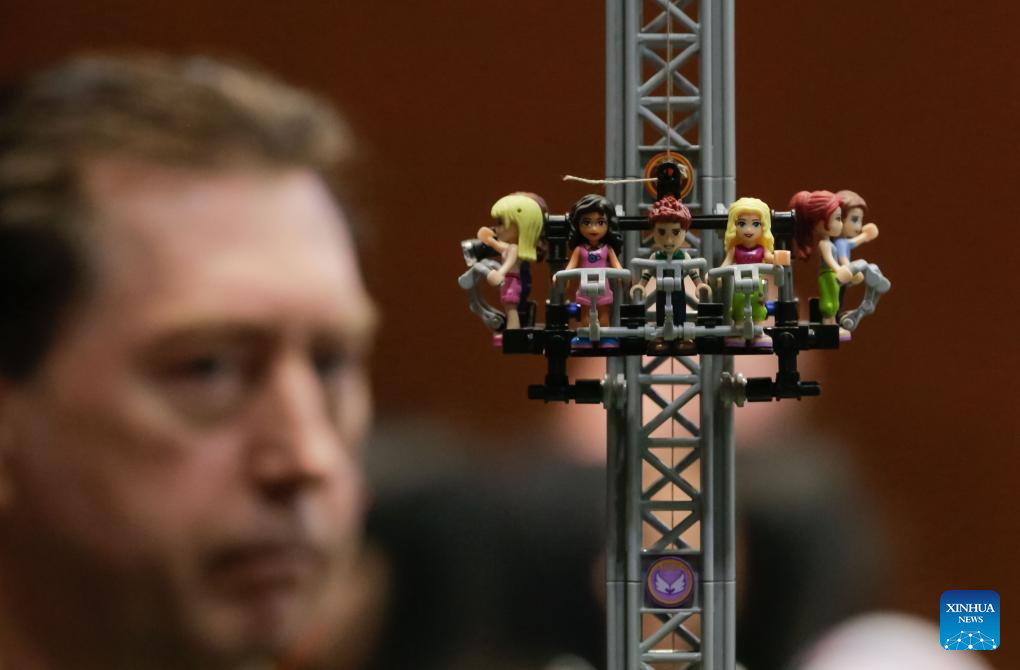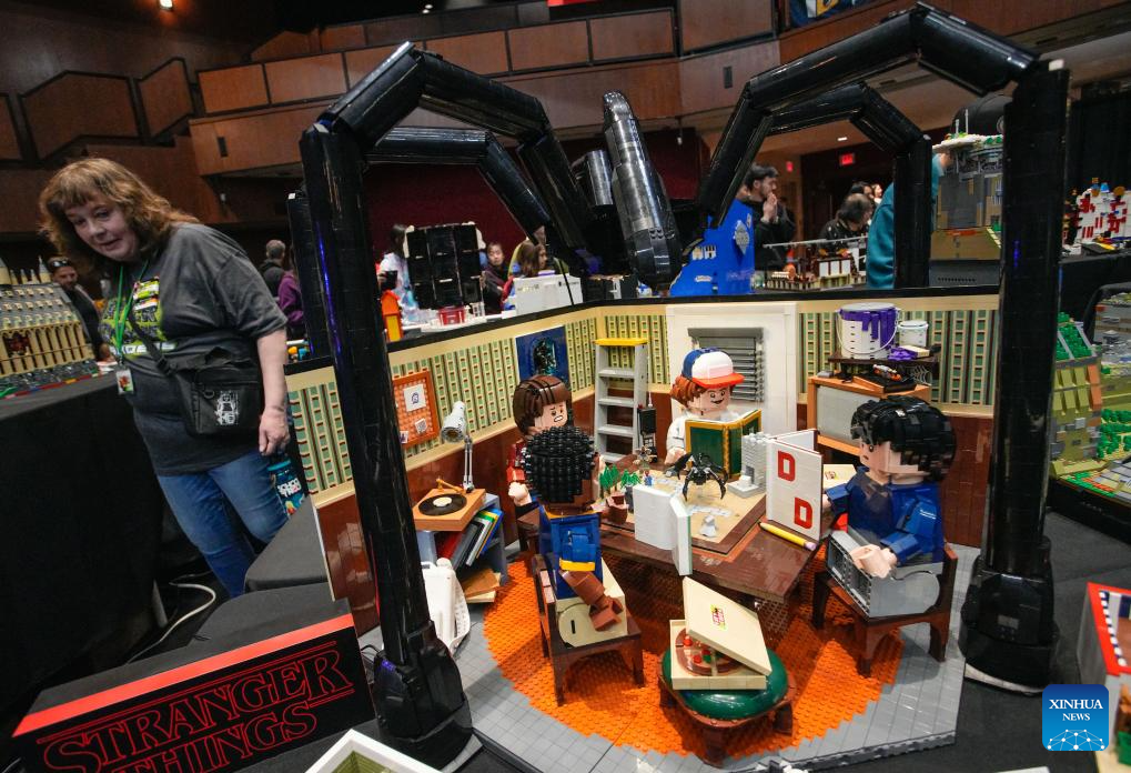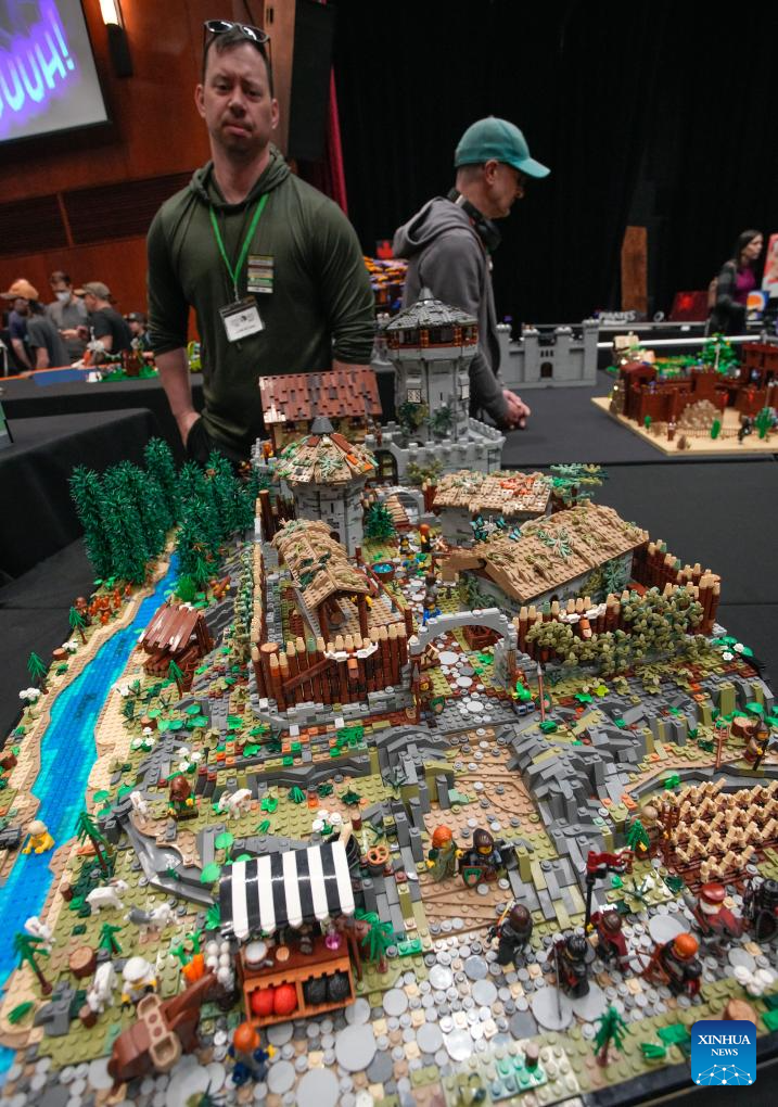 A LEGO creation is on display at the BrickCan LEGO exhibition at the River Rock Theatre in Richmond, British Columbia, Canada, on April 20, 2024. (Photo by Liang Sen/Xinhua)
