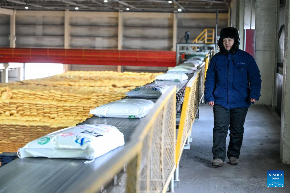 An employee works at a fertilizer company in Manas County of Changji Hui Autonomous Prefecture, northwest China's Xinjiang Uygur Autonomous Region, on March 4, 2026. Agricultural supply manufacturers in Xinjiang are working at full capacity to fulfill orders and ensure a steady flow of fertilizers and materials for spring farming.