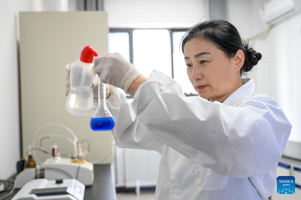 An employee conducts an experiment at a fertilizer company in Manas County of Changji Hui Autonomous Prefecture, northwest China's Xinjiang Uygur Autonomous Region, on March 5, 2026. Agricultural supply manufacturers in Xinjiang are working at full capacity to fulfill orders and ensure a steady flow of fertilizers and materials for spring farming.