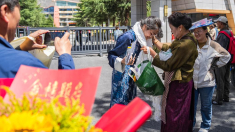 Snow-covered Mt. Gangshika in China's Qinghai attracts tourists in winter