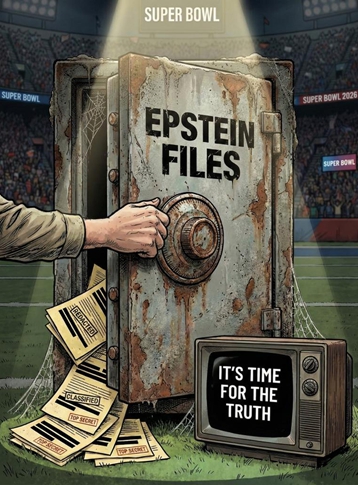 Cartoon | Epstein files protest reaches the Super Bowl