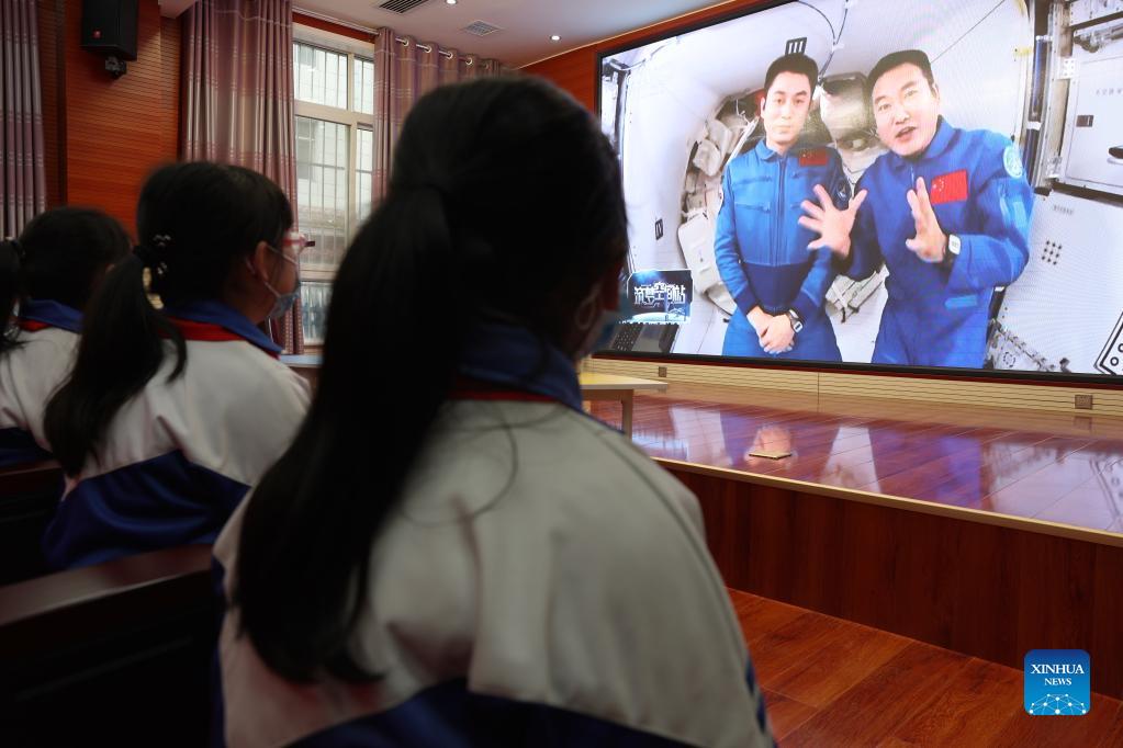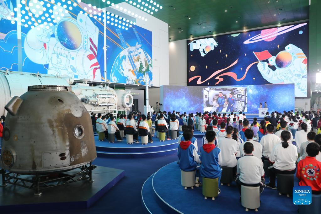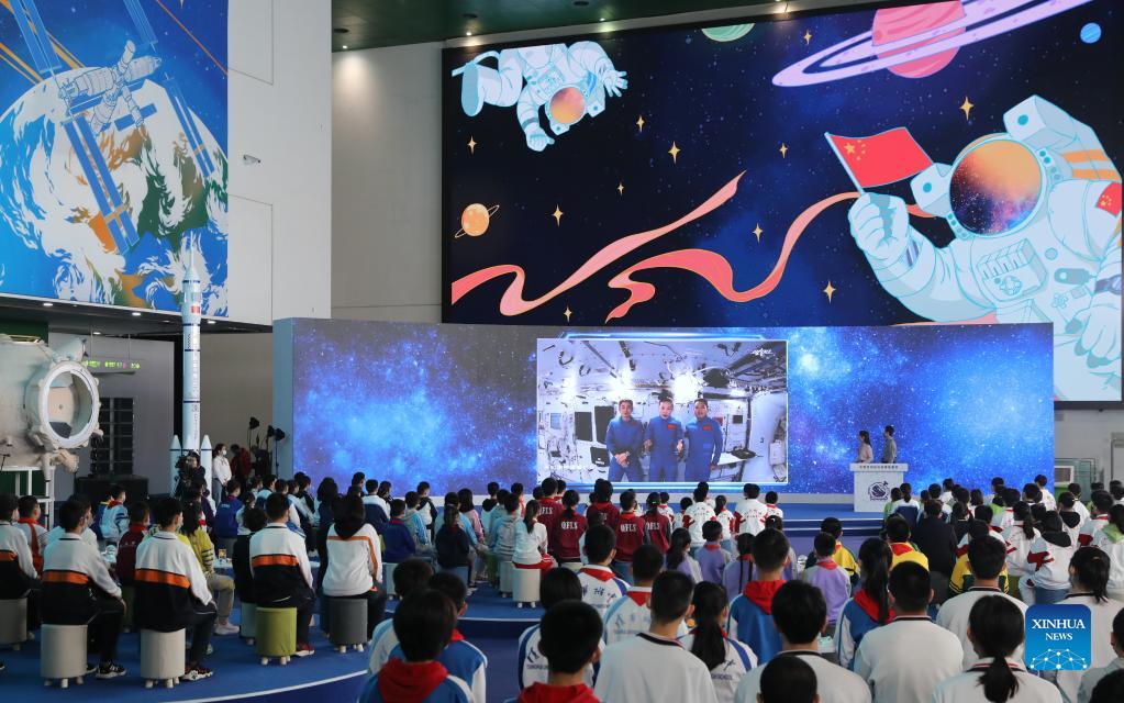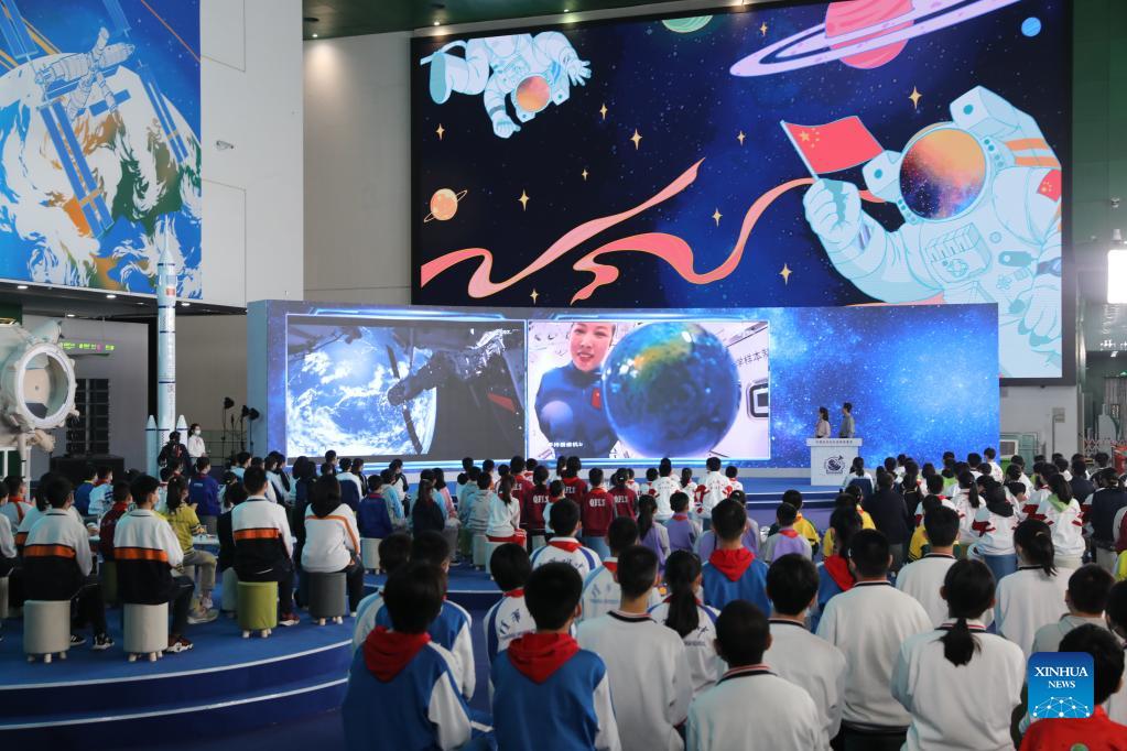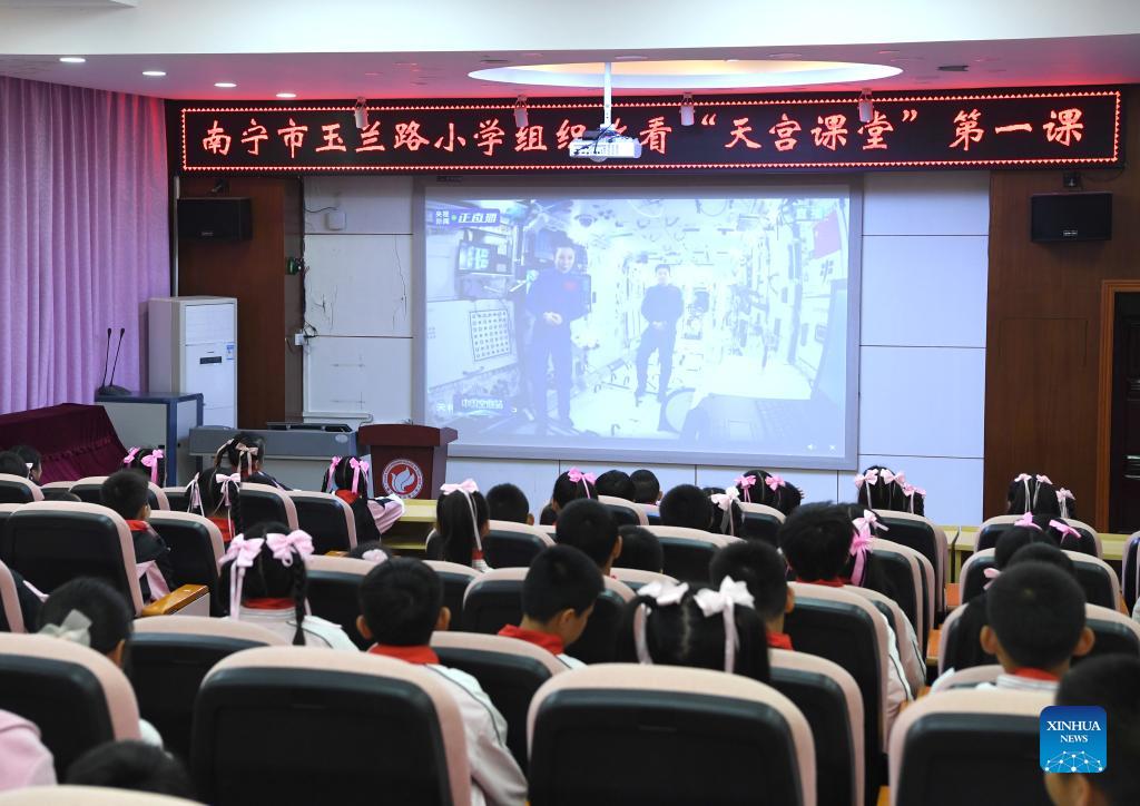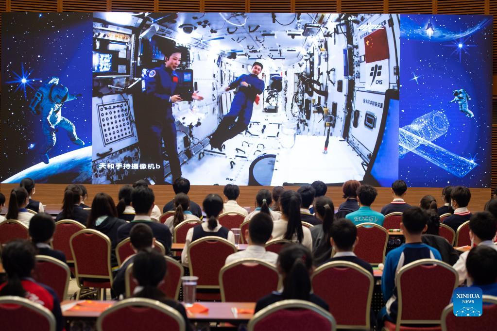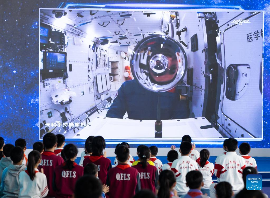 BEIJING, Dec. 9 (Xinhua) -- The first live class from China's space station was held on Thursday afternoon, given by Shenzhou-13 crew members Zhai Zhigang, Wang Yaping and Ye Guangfu to students on Earth.