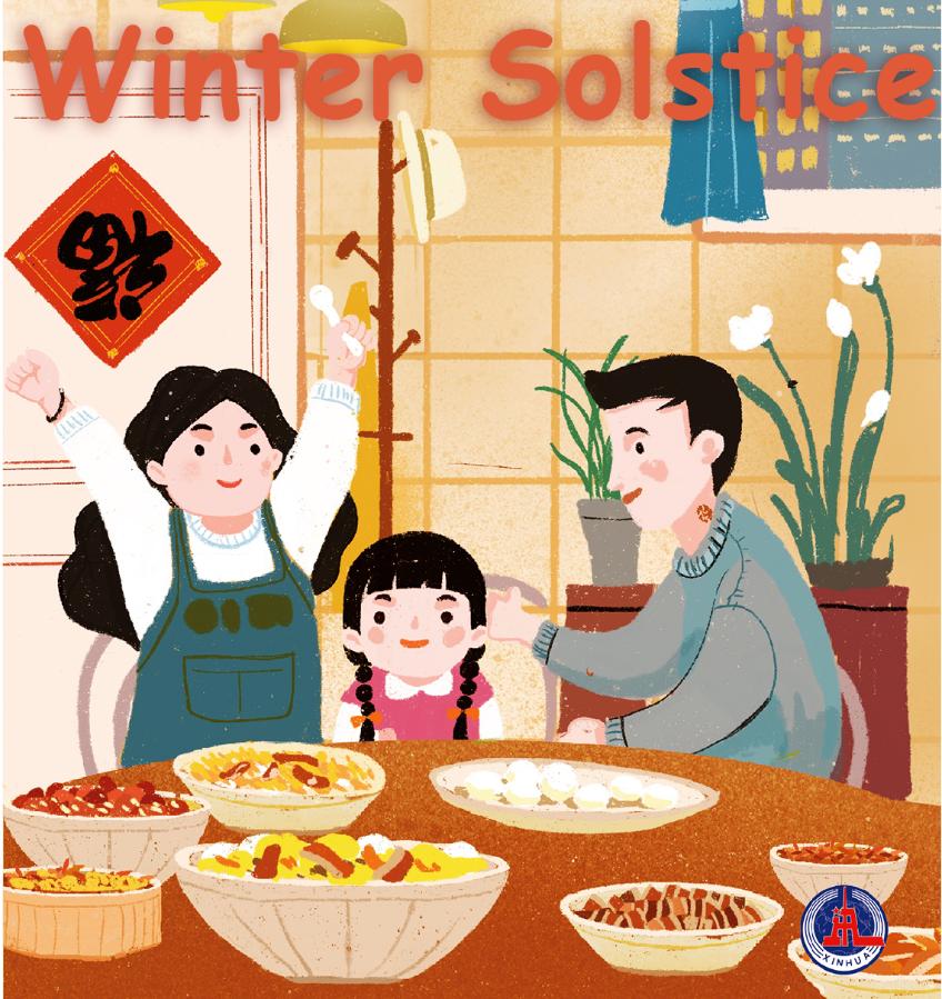 BEIJING, Dec. 21 (Xinhua) -- Winter Solstice, or Dongzhi, the shortest day of the year, falls on Dec. 21 this year. In Chinese culture, it marks the beginning of deep winter and a break from farming in traditional agricultural society. It is also a time for family gatherings.