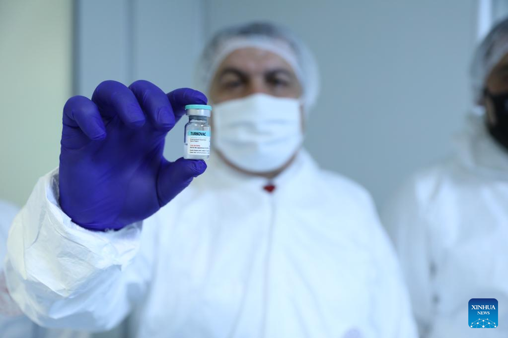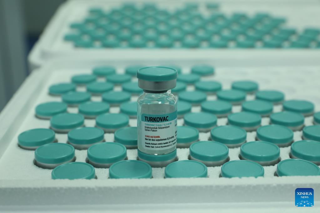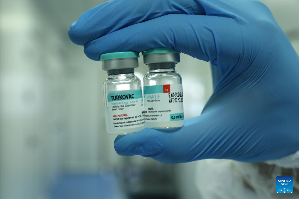 Vials of the Turkovac vaccine are displayed at a Turkovac vaccine manufacturing center in the southeastern Sanliurfa province, Turkey, on Dec. 22, 2021. Turkovac, Turkey's first domestically produced COVID-19 vaccine, has received emergency use authorization by the authorities, Turkish Health Minister Fahrettin Koca announced on Wednesday. (Xinhua)