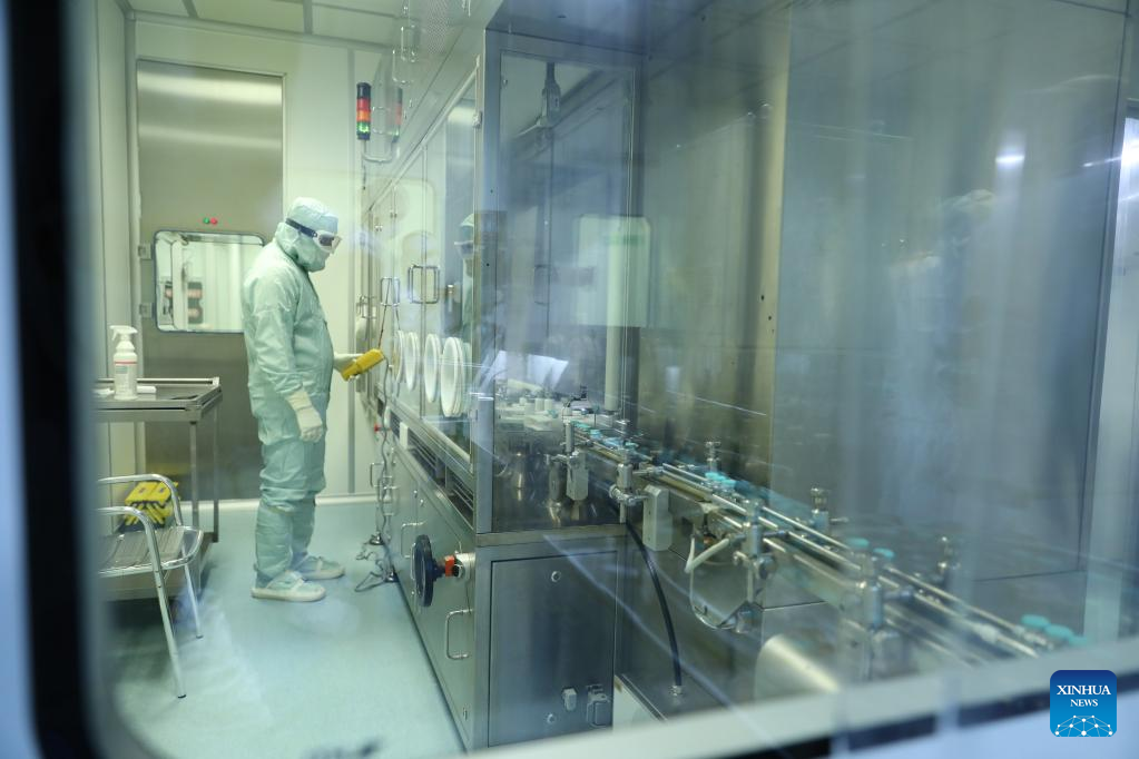 A staff member works at a Turkovac vaccine manufacturing center in the southeastern Sanliurfa province, Turkey, on Dec. 22, 2021. Turkovac, Turkey's first domestically produced COVID-19 vaccine, has received emergency use authorization by the authorities, Turkish Health Minister Fahrettin Koca announced on Wednesday. (Xinhua)