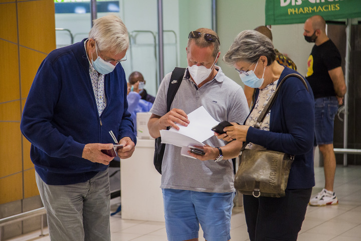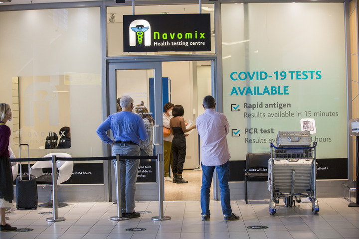 Travelers check their COVID-19 test results at Cape Town International Airport in Cape Town, South Africa, Nov. 29, 2021. (Str/Xinhua)
