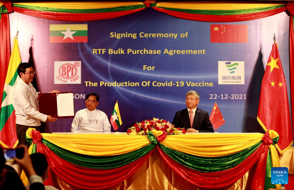 YANGON, Dec. 23 (Xinhua) -- Myanmar's Ministry of Industry and China National Biotec Group, affiliated with China National Pharmaceutical Group (Sinopharm), signed a supply agreement on Wednesday for semi-finished vaccine products.