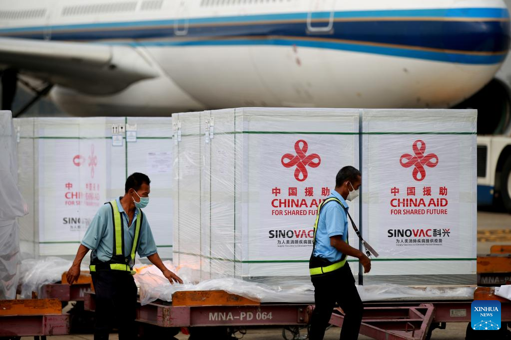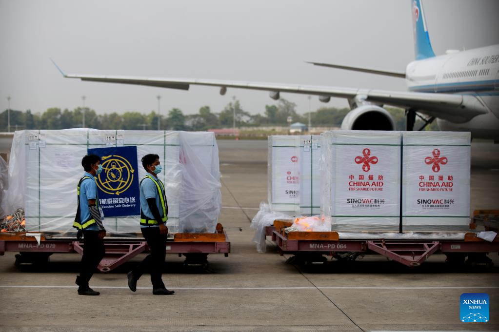 On the same day, a new batch of 1 million doses of Sinovac COVID-19 vaccines donated by China arrived in Myanmar's Yangon. Enditem