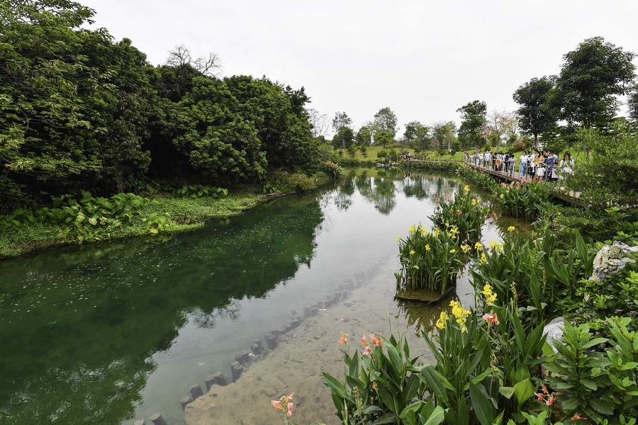 Citizens visit Guangzhou Lijiao sewage plant in Guangzhou, south China's Guangdong Province, Nov. 21, 2021. (Xinhua/Liu Dawei)