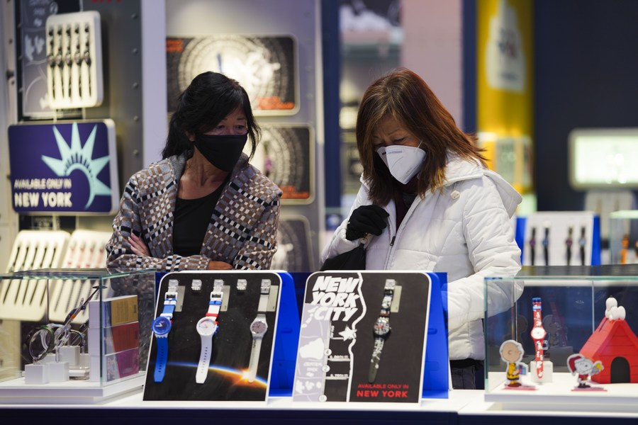 People shop at a store in New York, the United States, Dec. 7, 2021. (Xinhua/Wang Ying)