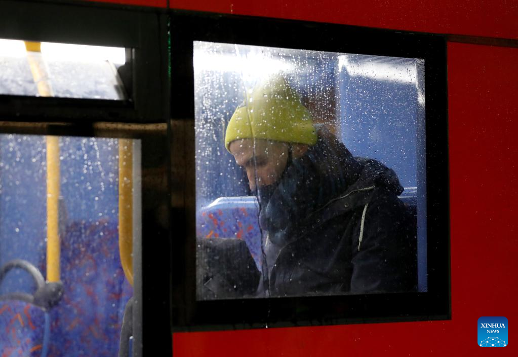 A masked man is seen in a bus on Christmas Eve in London, Britain, Dec. 24, 2021. Britain has reported another 122,186 coronavirus cases in the latest 24-hour period, exceeding 120,000 daily cases for the first time since of the start of the pandemic, according to official figures released Friday. (Xinhua/Li Ying)