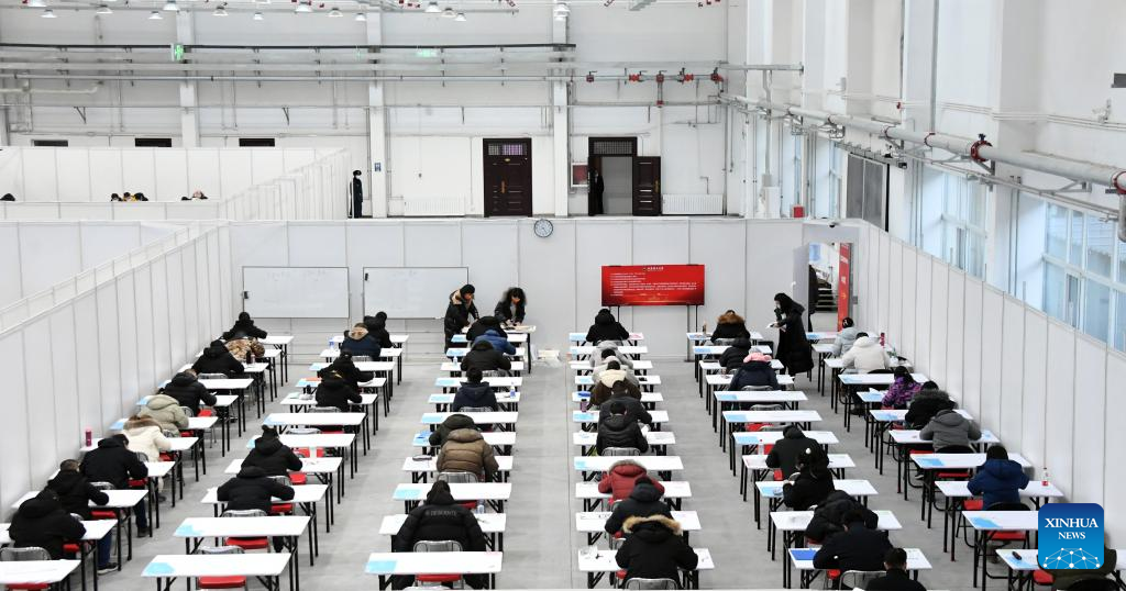Photo taken on Dec. 25, 2021 shows the exam site for postgraduate entrance exams in Beijing Institute of Technology in Beijing, capital of China. China's 2022 national entrance exams for postgraduate studies kicked off on Saturday. (Xinhua/Ren Chao)