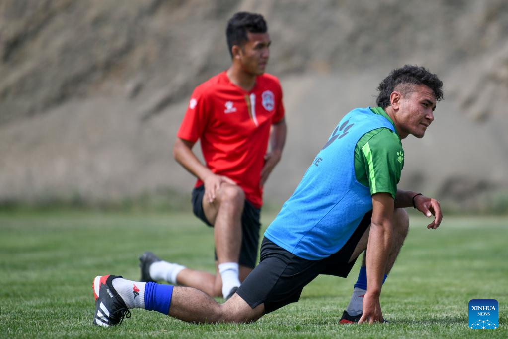 Nurmemet Sherep participates in a tryout of the Xinjiang Tianshan Leopard Football Club in northwest China's Xinjiang Uygur Autonomous Region, June 19, 2020. (Xinhua/Wang Fei)