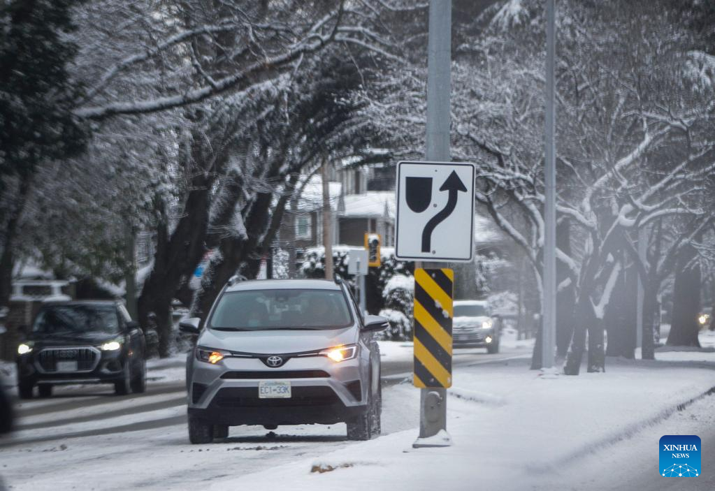 Vehicles drive on a snow-covered street in Vancouver, British Columbia, Canada, on Dec. 26, 2021. Environmental Canada issued an extreme cold and Arctic outflow warning throughout most of British Columbia this holiday weekend, as wind chill values could dip below -20 degrees Celsius on Sunday. (Photo by Liang Sen/Xinhua)