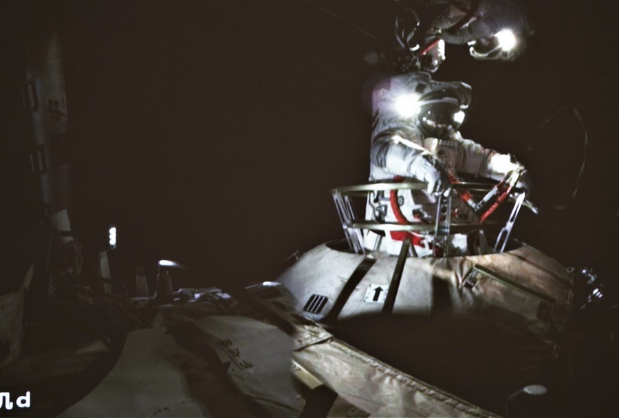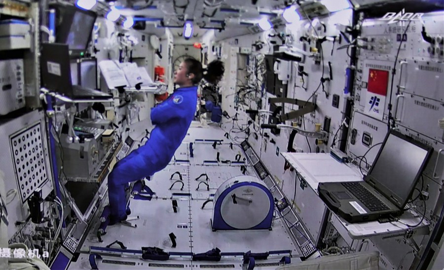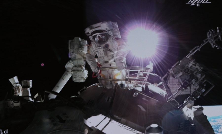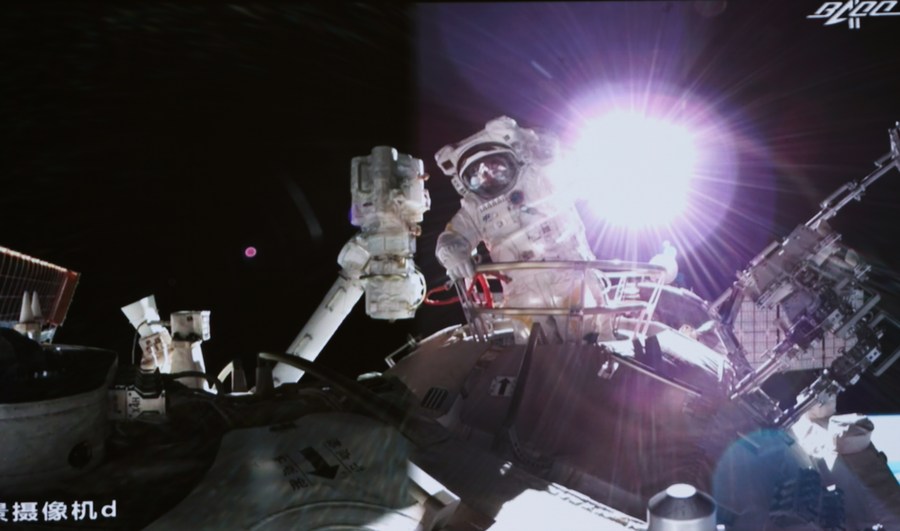 The CMSA said Ye opened the hatch of Tianhe's node cabin at 6:44 p.m. (Beijing Time). Ye and Zhai, donning China-developed Feitian spacesuits, got out of the core module from its node cabin at 6:50 p.m. and 7:37 p.m. respectively.