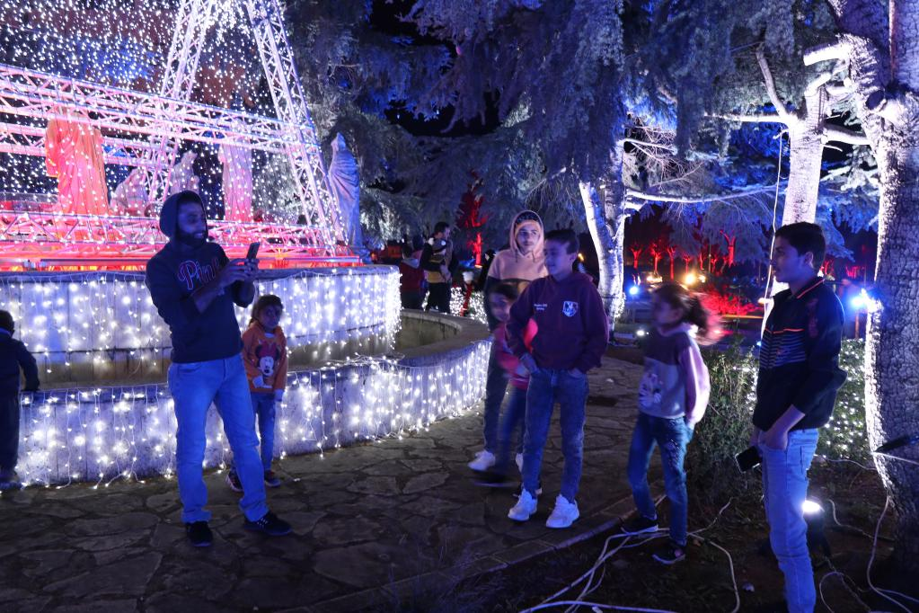 People visit the Christmas village in Zahle, eastern Lebanon, on Dec. 25, 2021. (Photo by Taher Abu Hamdan/Xinhua)