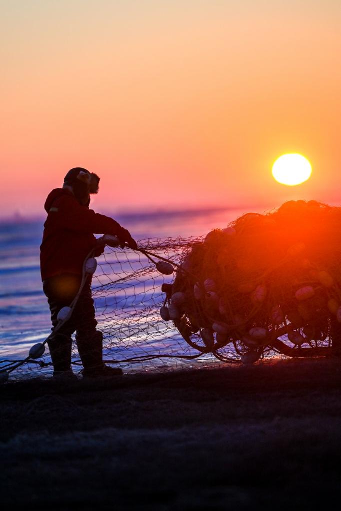A fisherman prepares to harvest fish on the Chagan Lake in Songyuan City, northeast China's Jilin Province, Dec. 26, 2021. (Xinhua/Yan Linyun)■