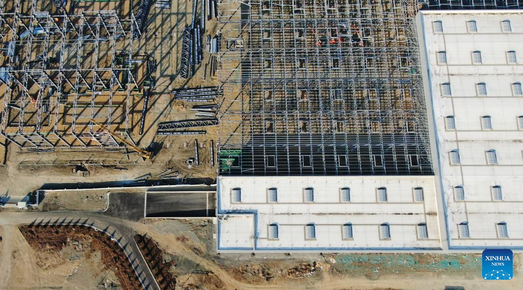 Aerial photo taken on Dec. 28, 2021 shows the new Tiexi Plant of BMW Brilliance Automotive (BBA) under construction in Shenyang, northeast China's Liaoning Province. German luxury carmaker BMW on Dec. 16 announced its upgraded strategy in the Chinese market, with three new or upgraded plants that are in Shenyang and Zhangjiagang to open in 2022. (Xinhua/Yang Qing)