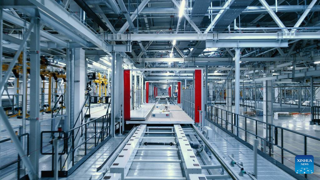 Photo taken on Dec. 21, 2021 shows the inside of the new Tiexi Plant of BMW Brilliance Automotive (BBA) in Shenyang, northeast China's Liaoning Province. German luxury carmaker BMW on Dec. 16 announced its upgraded strategy in the Chinese market, with three new or upgraded plants that are in Shenyang and Zhangjiagang to open in 2022. (Xinhua)