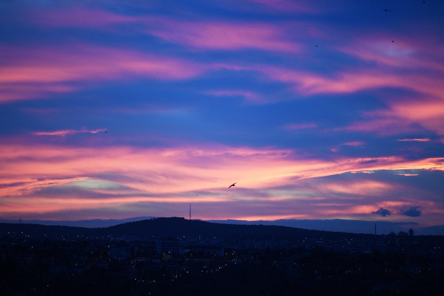 The first rays of the morning sun in the Bosphorus Strait in Istanbul, Turkey, on Dec. 11, 2021. (Xinhua/Shadati)