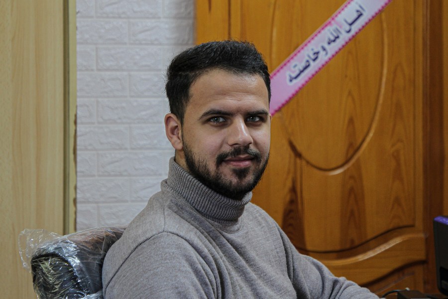 Mahmoud Abu Jibara, a young Palestinian man from al-Shati refugee camp in western Gaza city, sits in his house in the refugee camp on Dec. 27, 2021. (Xinhua)