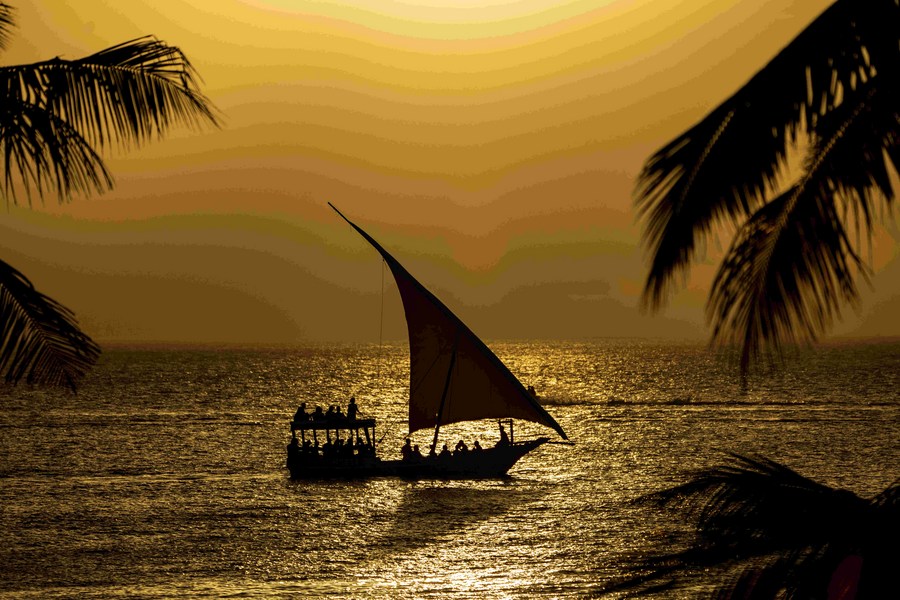 People view the sunset in Zanzibar, Tanzania, on July 30, 2021. (Xinhua/Herman Emmanuel)