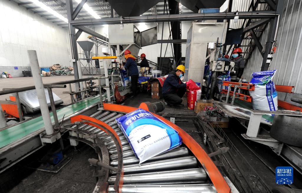 Photo taken on Dec. 29, 2021 shows that workers are busy at an organic fertilizer packaging line in a biofertilizer factory in Zhaiwang Township, Yangxin County, east China’s Shandong Province. In recent years, the local government has been helpingfarmers increase their income by facilitating organic vegetable planting and establishing organic fertilizer production bases. Now the business has been scaled up and industrialized.