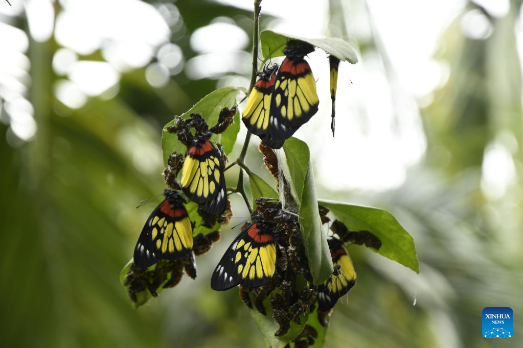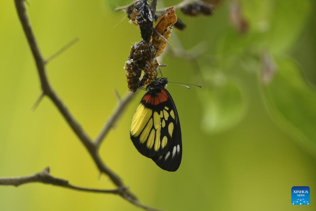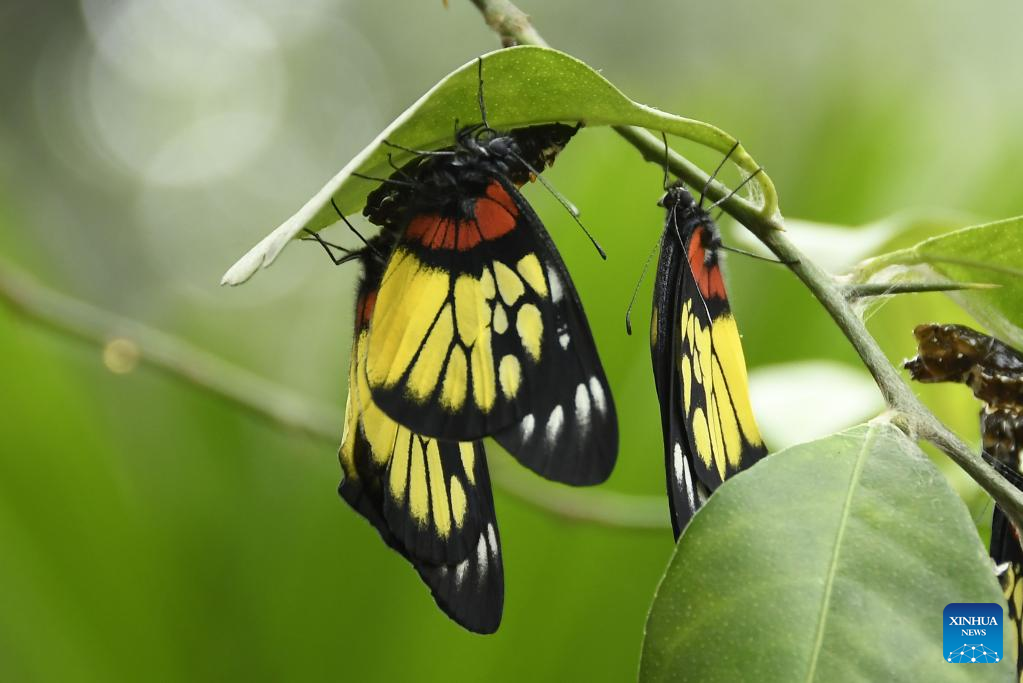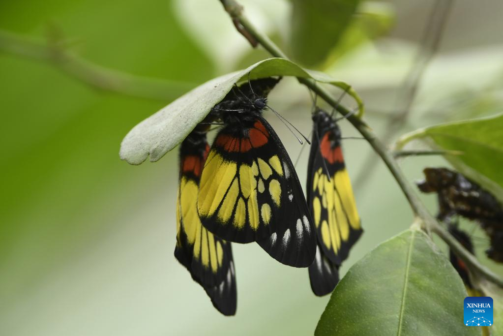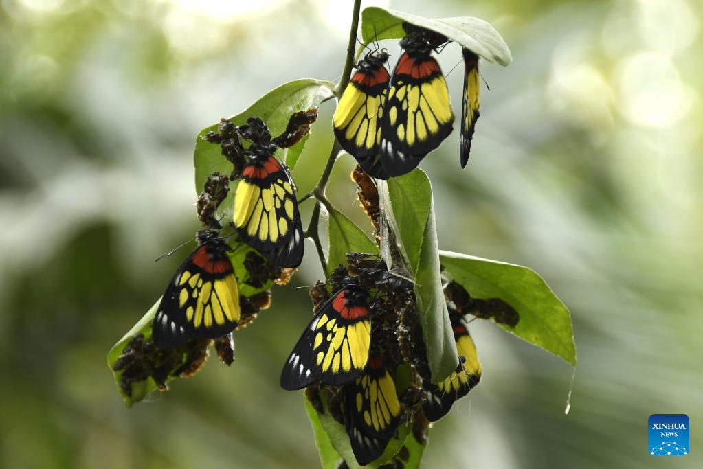 Photo taken on Dec. 30, 2021 shows red-spot jezebel butterflies on a branch in Nagaon district of India's northeastern state of Assam. (Str/Xinhua)
