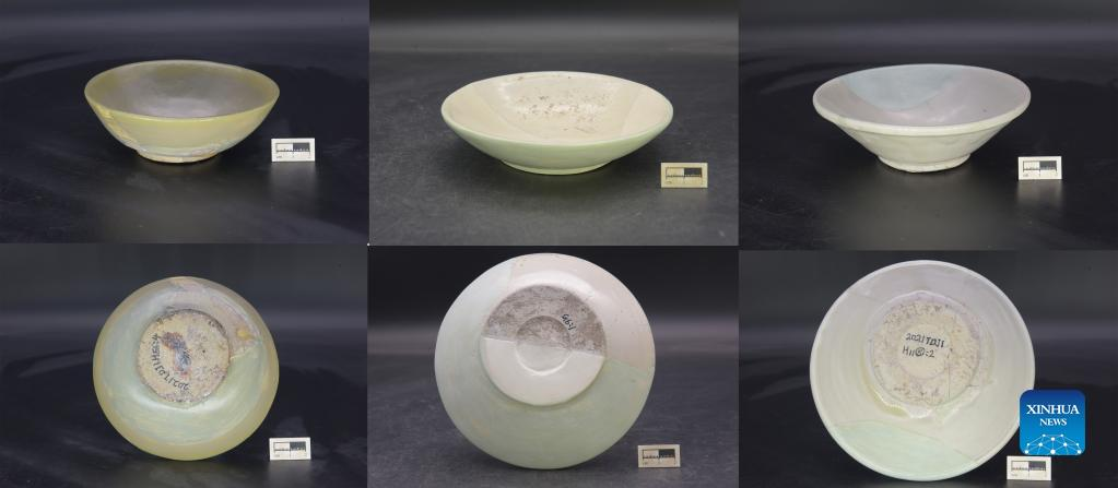 Combined photo taken on July 26, 2021 shows pottery bowls dating back to the Tang Dynasty (618-907) found at Junliangcheng site in north China's Tianjin Municipality. (Xinhua)
